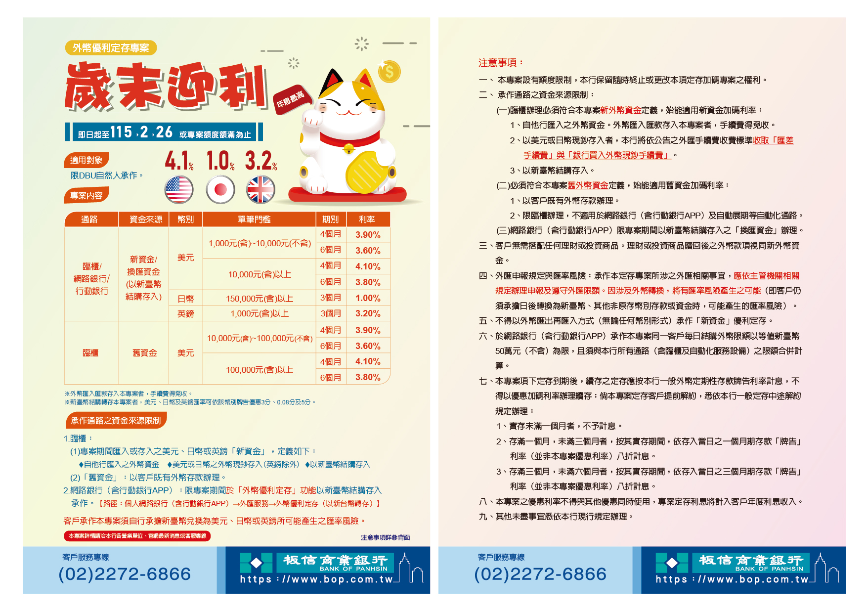 【歲末迎利】外幣優利定存專案(期間:114年12月10日起至115年2月26日止)