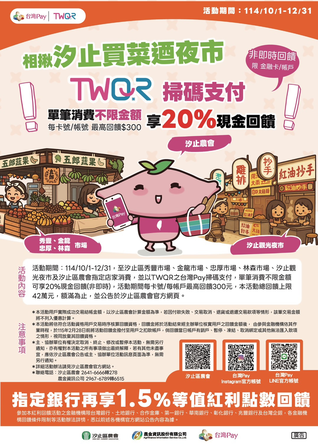 相揪汐止買菜迺夜市 TWQR獨享20%回饋~114/12/31