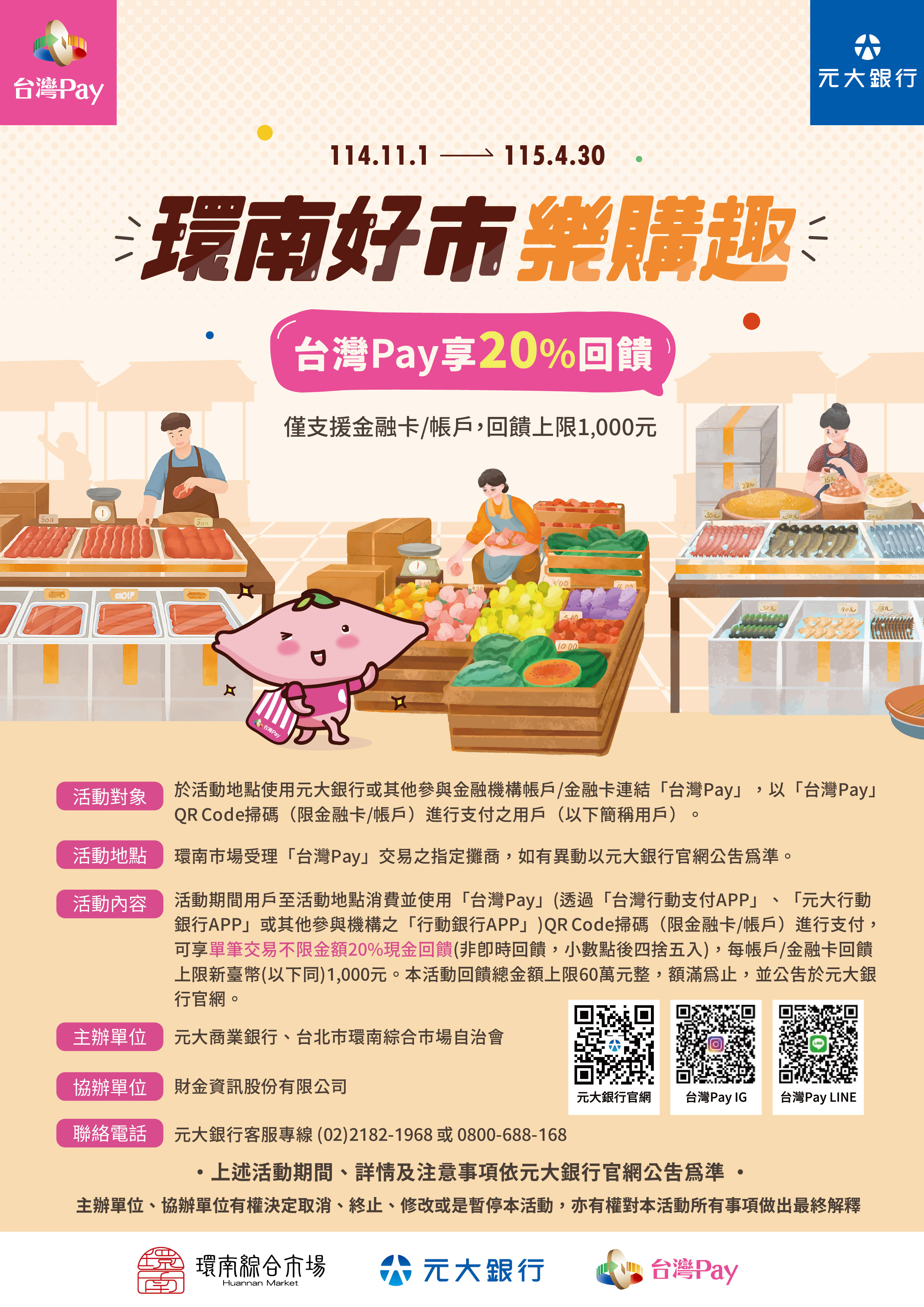 環南好市樂購趣 台灣Pay享20%回饋~115/04/30