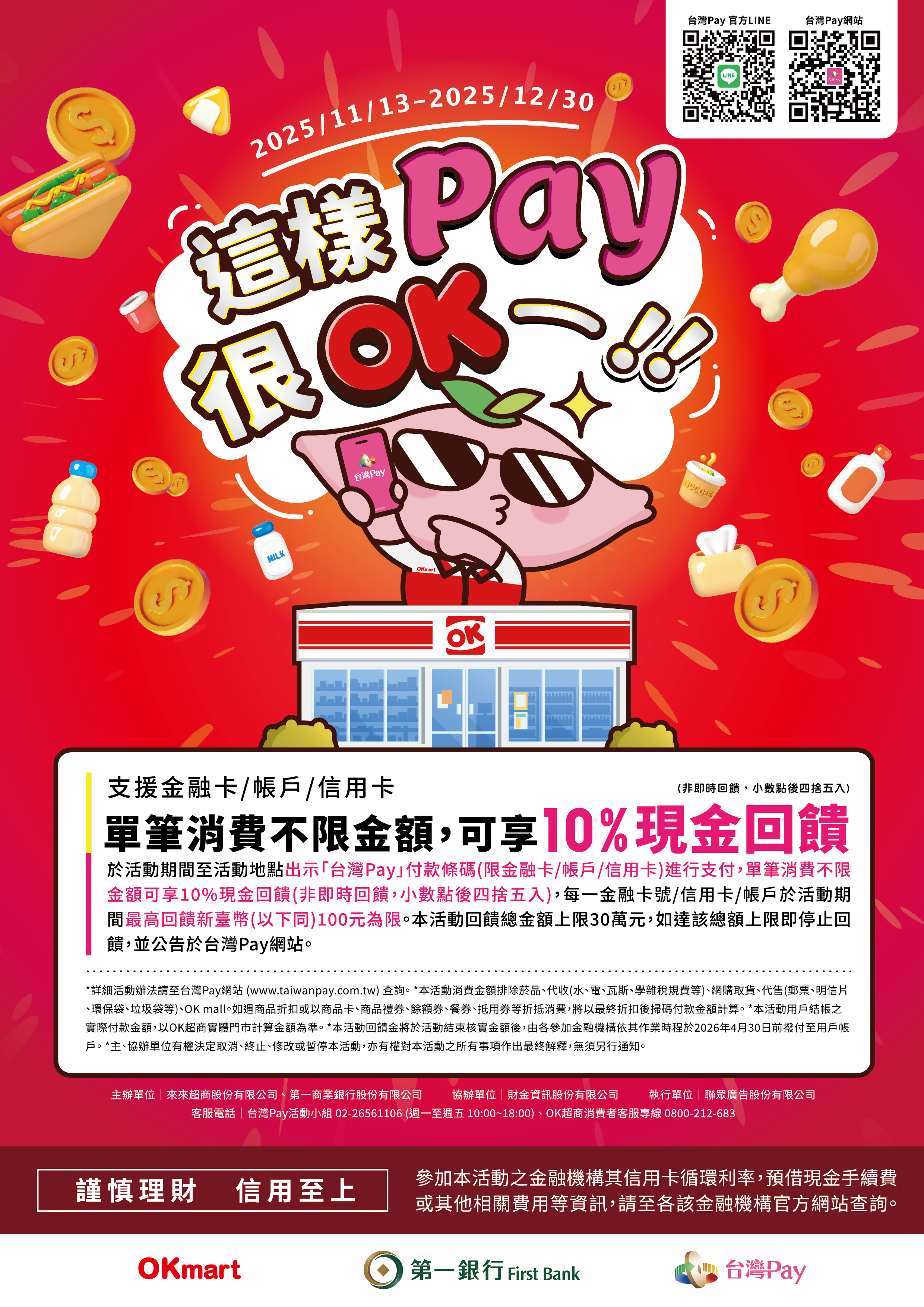 這樣Pay很OK! 享10%現金回饋 - 114/12/30