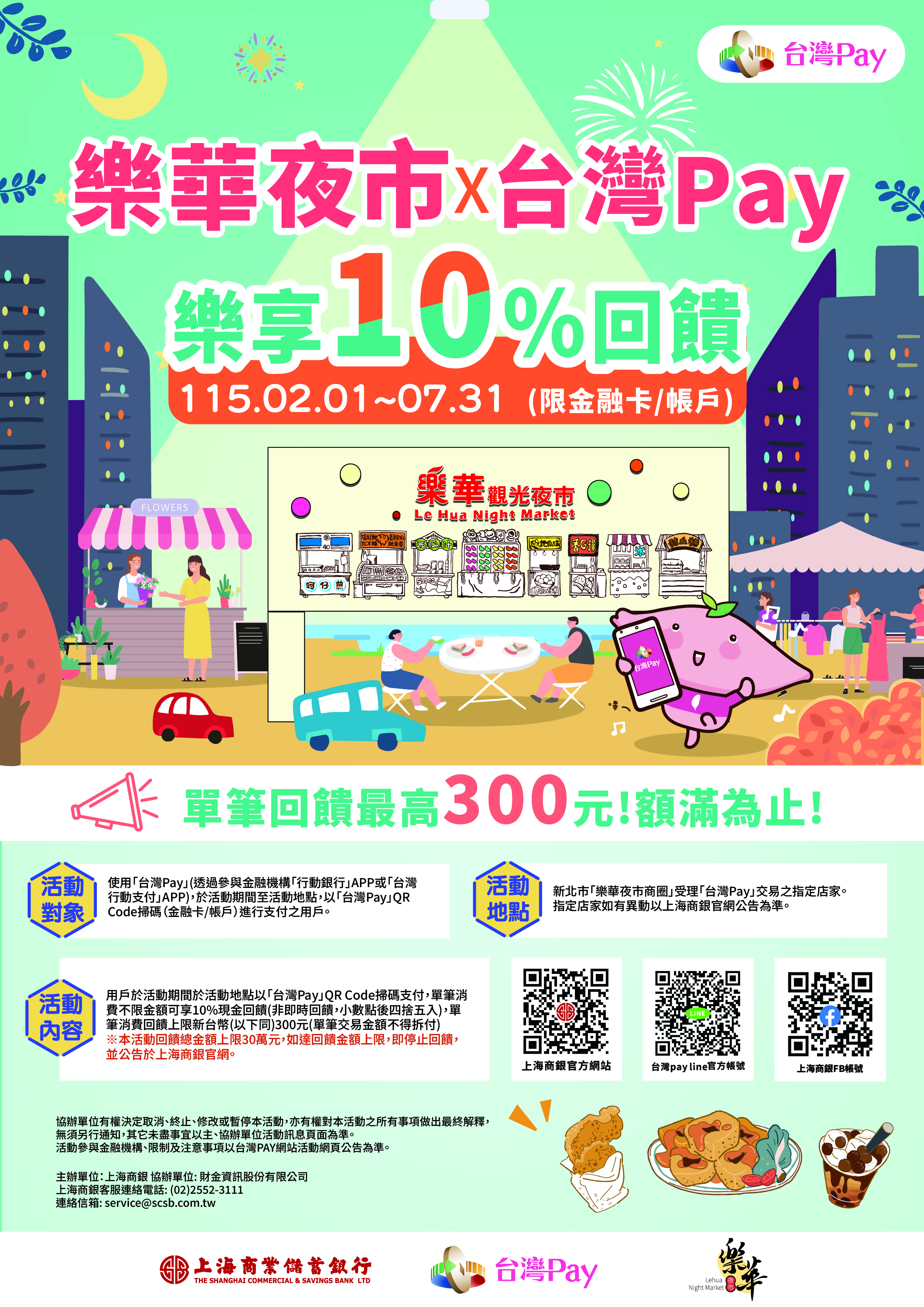 上海商銀與樂華夜市合作辦理「來逛樂華夜市樂享10%回饋」